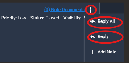 - When replying to an email: If responding to an email received through the portal, use the Reply or Reply All function. These options are available by selecting the three dots located on the right side of the email note.